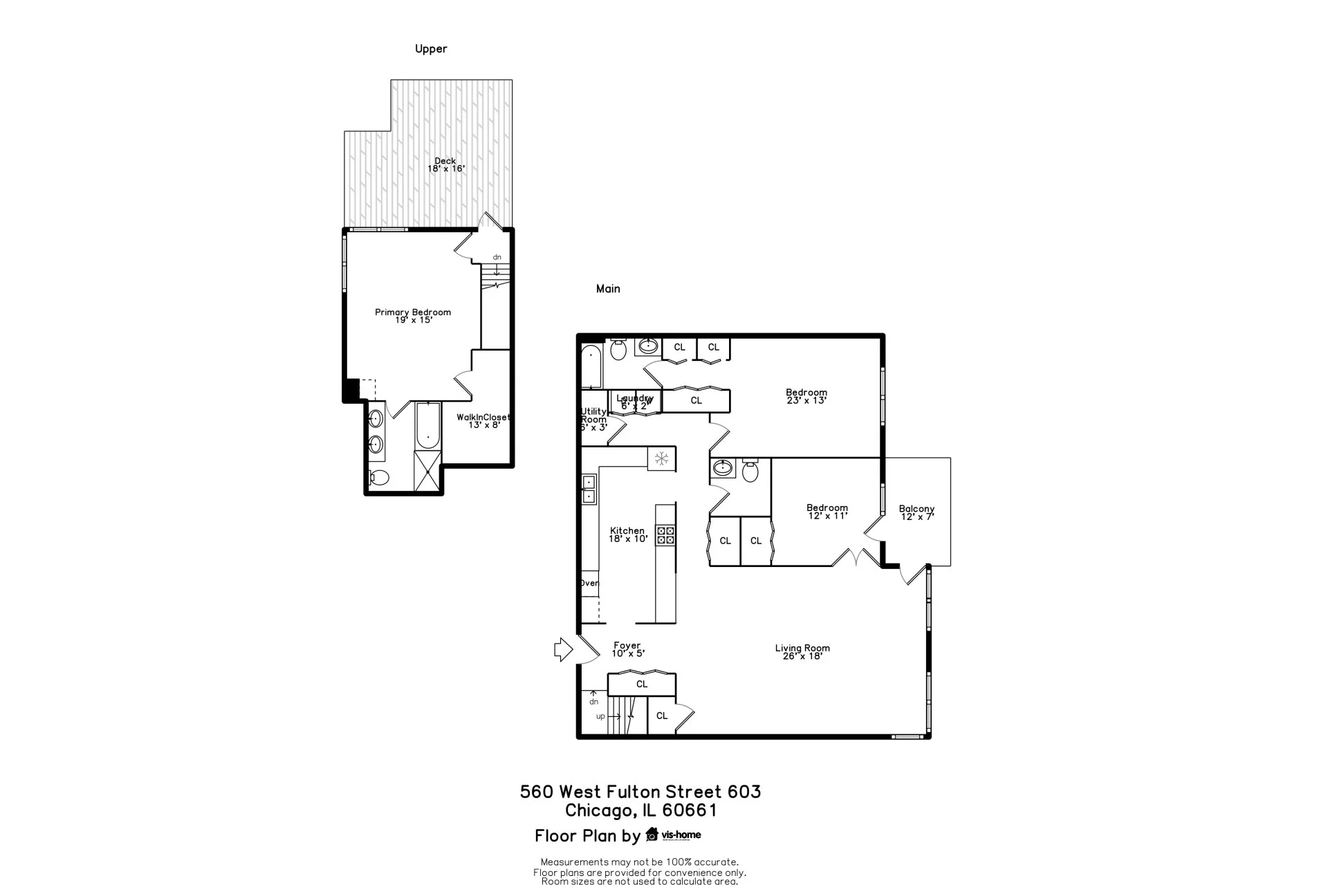 Expansive and sun-drenched 3 bed / 2.5 bath duplex-up with a private rooftop deck, ideally positioned in the vibrant core of the Fulton Market District, delivers an elevated city lifestyle. Set within an intimate elevator building, this refined residence showcases a chef-inspired kitchen outfitted with custom 42" cabinetry and polished granite countertops offering generous meal prep and serving space. The oversized living room flows effortlessly into a dedicated dining area perfect for hosting, while a private balcony extends the living space outdoors for grilling or unwinding. The main level also includes two well-proportioned bedrooms with ample closet space, along with convenient in-unit laundry. Upstairs, retreat to a luxurious primary suite featuring a spacious walk-in closet, double vanity, soaking tub, and a walk-in shower. The upper level also provides direct access to a newly constructed private rooftop deck with sweeping skyline vistas-an ideal setting for entertaining or relaxing above the city. Enjoy immediate proximity to everything that defines Fulton Market and the surrounding West Loop. From Michelin-starred dining and acclaimed hotspots like Girl & the Goat and Au Cheval, to boutique fitness studios, art galleries, and high-end retail. Commuting is seamless with nearby access to the Chicago Loop, CTA and Metra train stations, along with quick connections to major expressways. Garage parking space #10 is offered for an additional $25K. Dedicated storage included.